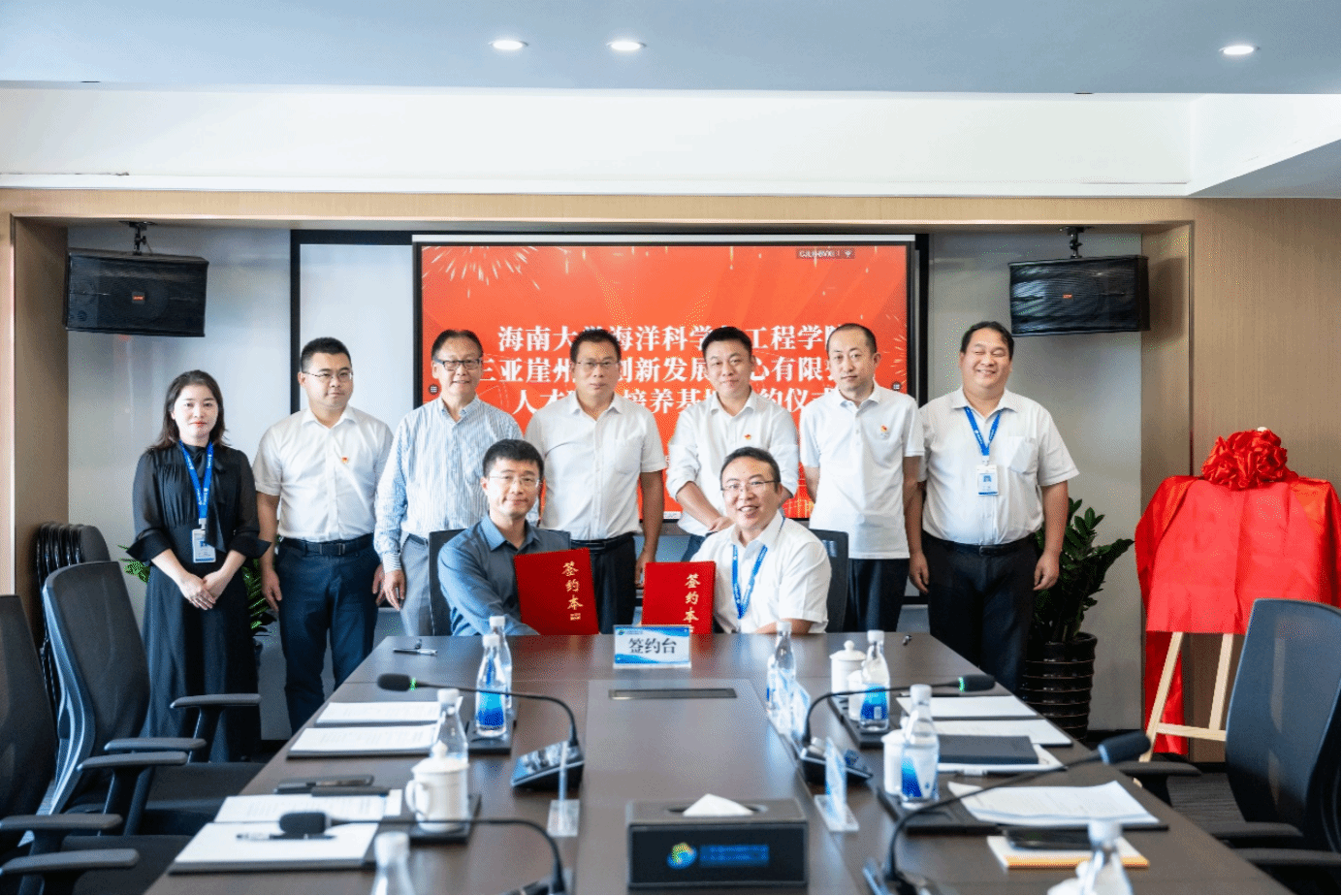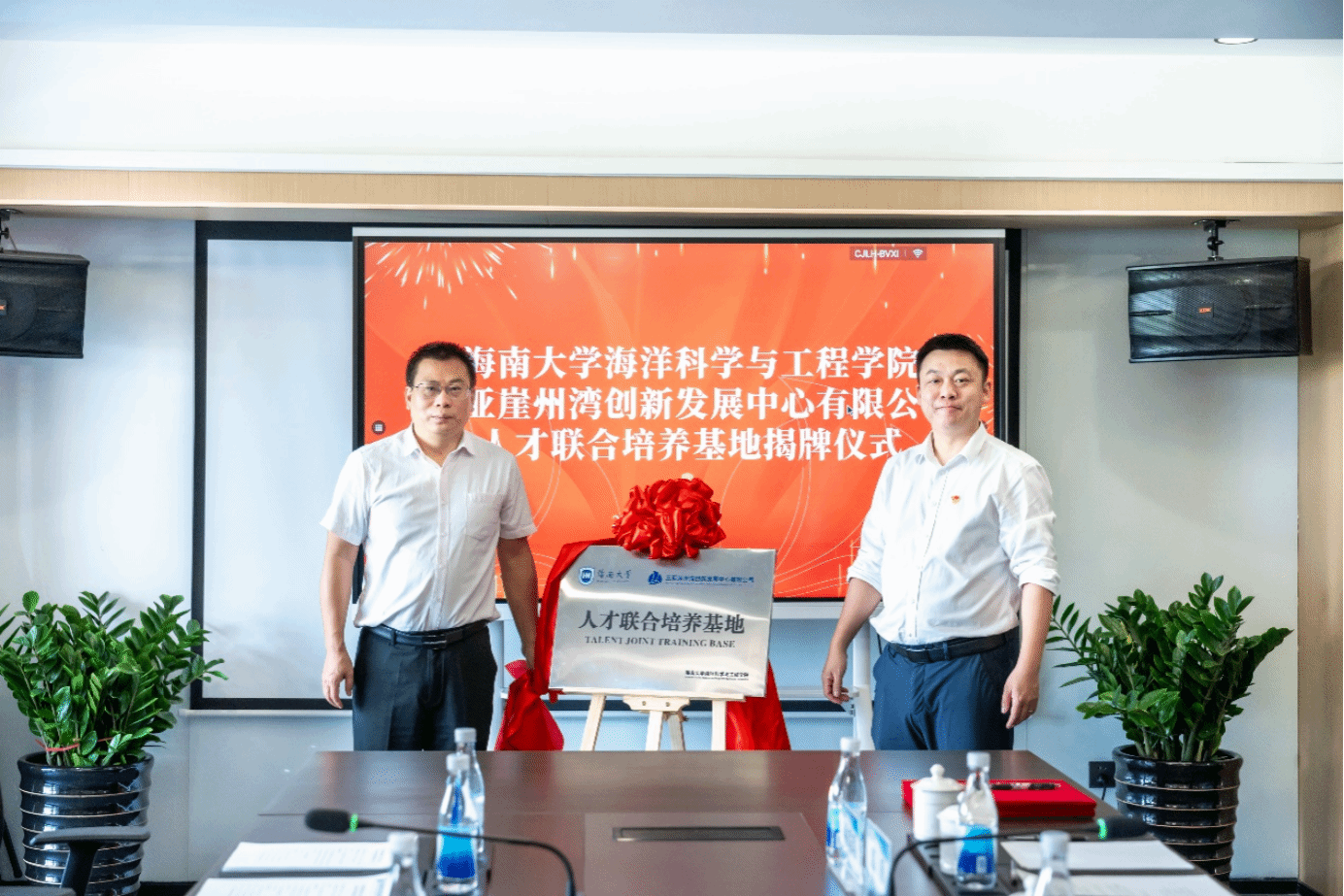 双方代表展开深入交流并达成充分共识,表示今后将持续加强合作,充分发挥校企双方资源优势,积极培养高素质、创新型人才,为加快海南自由贸易港建设贡献人才力量。随后,任年鑫和包晓东分别作为双方代表进行了签约仪式,郑中兵和李宁共同进行了揭牌仪式。